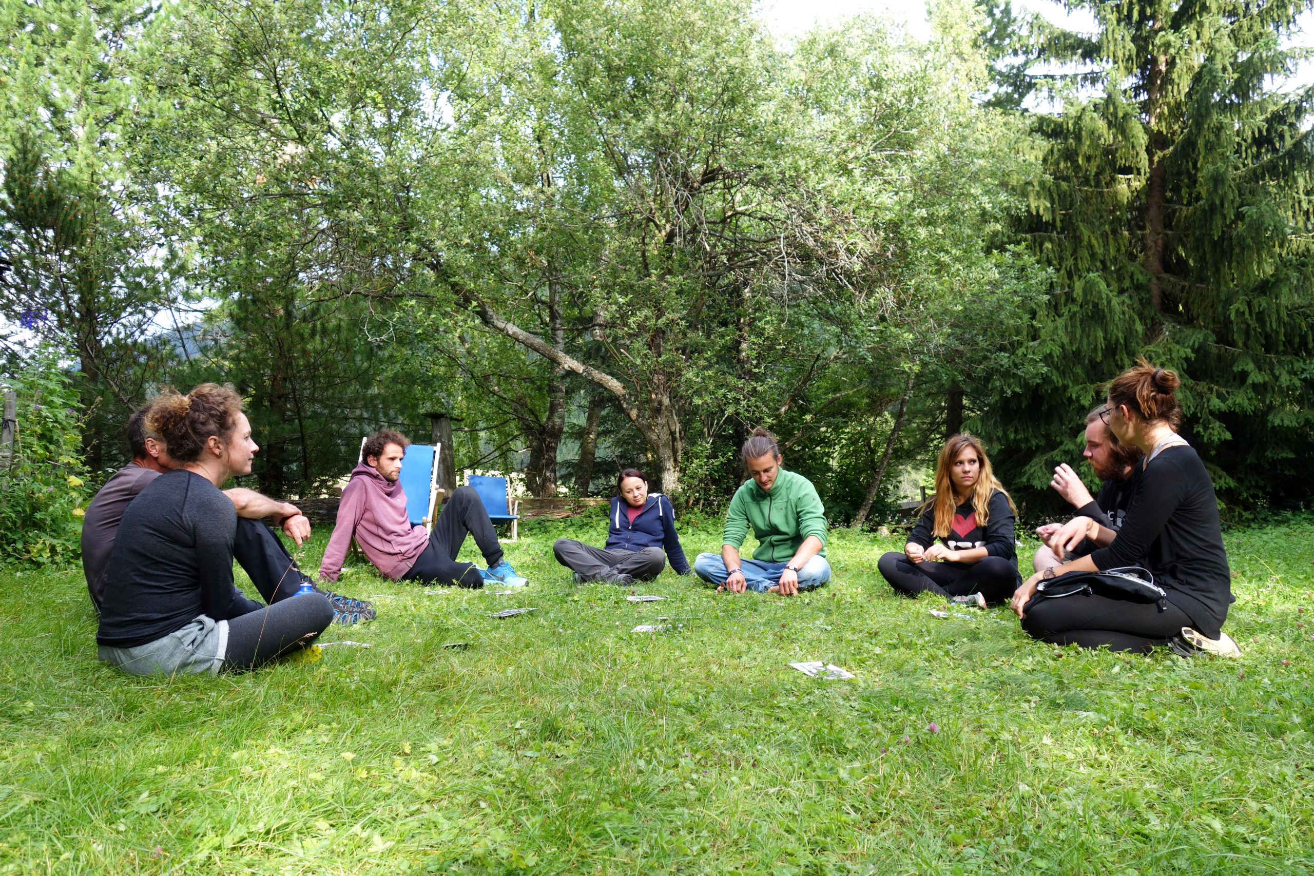 Draußen in der Natur – haben wir bestimmte Plätze, die wir je nach Anliegen auswählen. Ob im Park neben dem Seminarraum, an einer Waldlichtung, während einem aktivierenden Spaziergang in der Natur oder auf einer Seminarhütte am Berg, wir versuchen bewusst, den Ort in den Prozess mit einzuflechten.