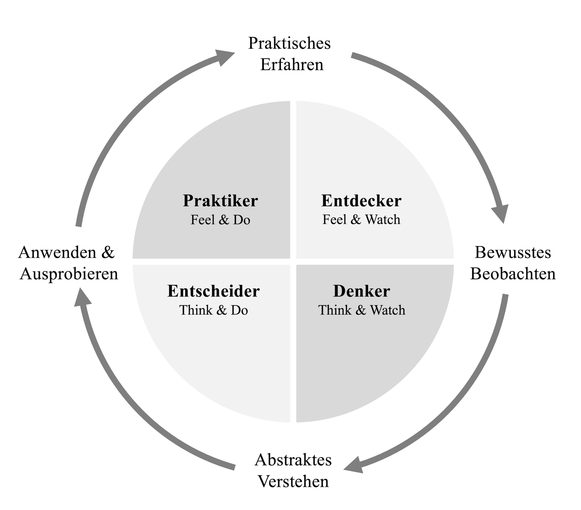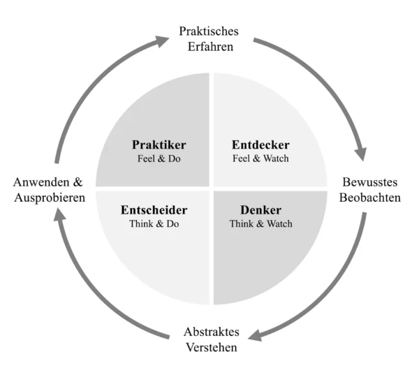 Abbildung 2 Experimental Learning Cycle & Lerntypen nach Kolb (1984) (eigene Darstellung).