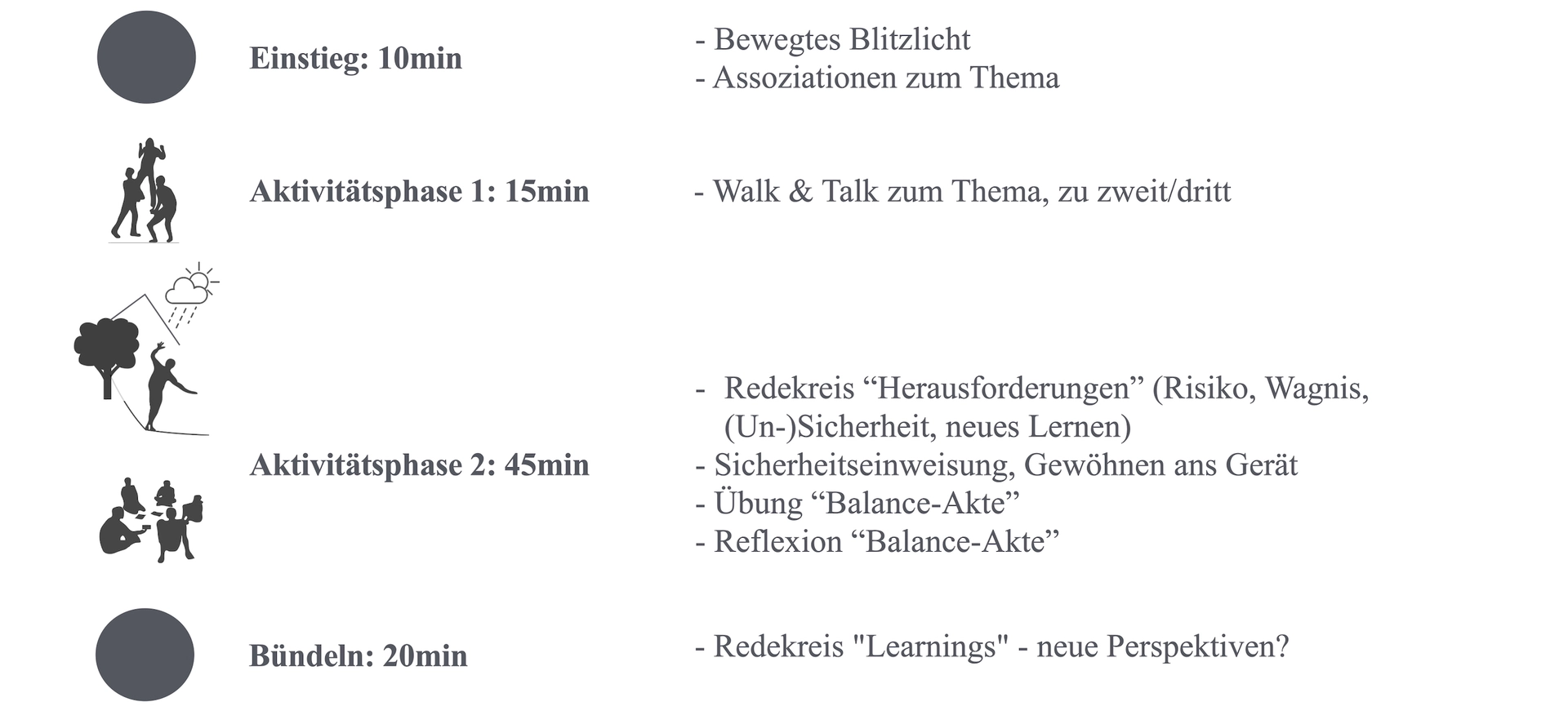 - Beziehung: Gruppe, Einzelperson, Trainer:in & Natur