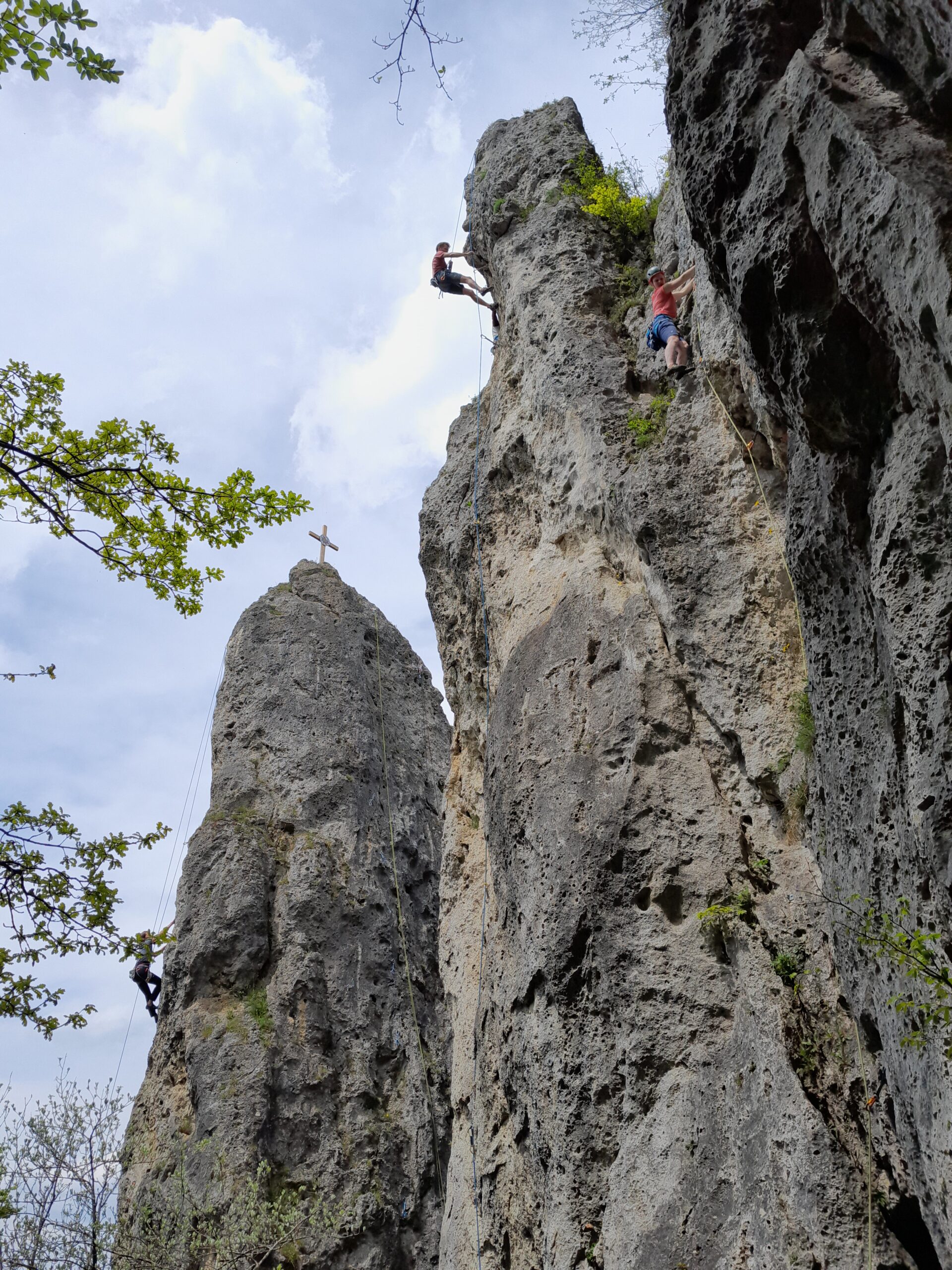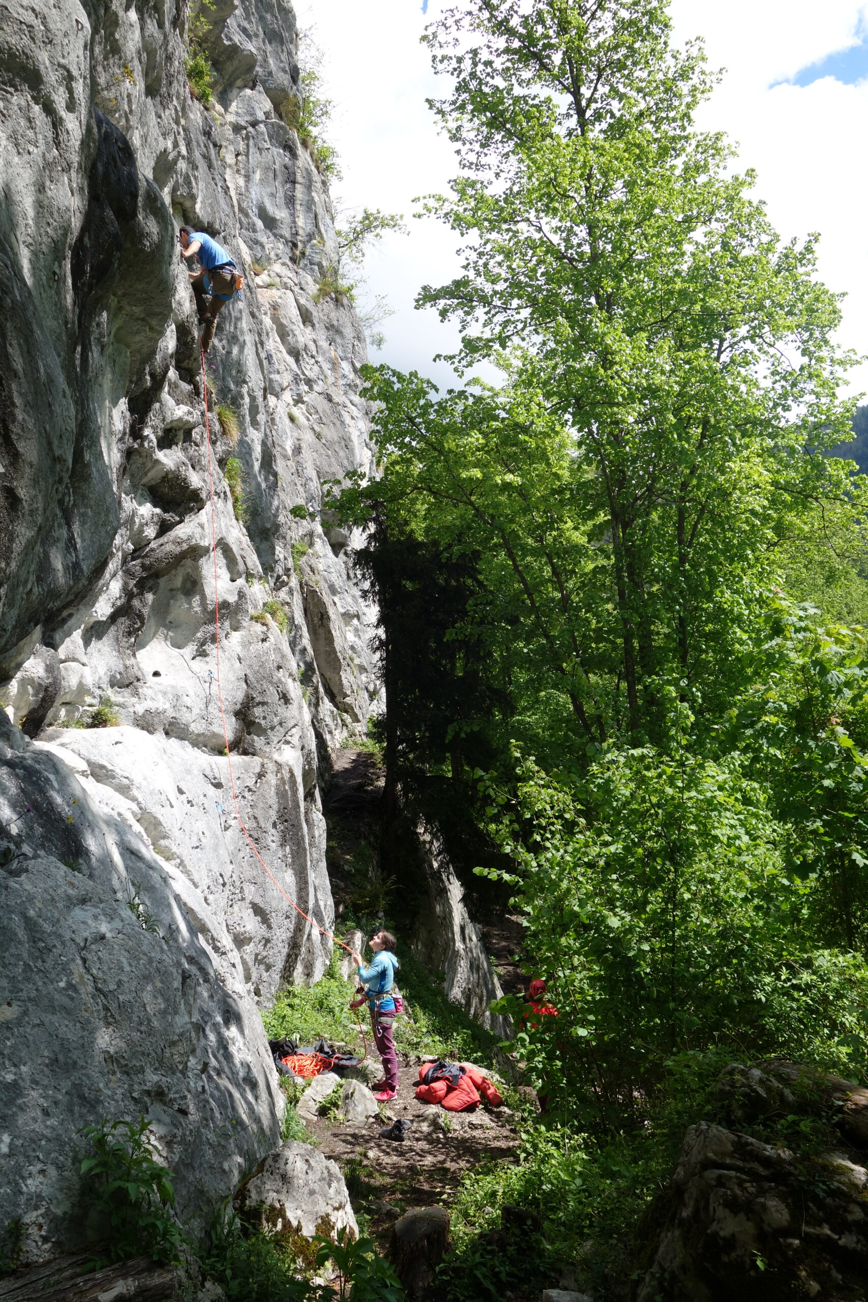 - Sicherungs- und Klettervorerfahrung (Kletterkönnen ab 4c empfehlenswert, geübtes Vorstiegssichern)
