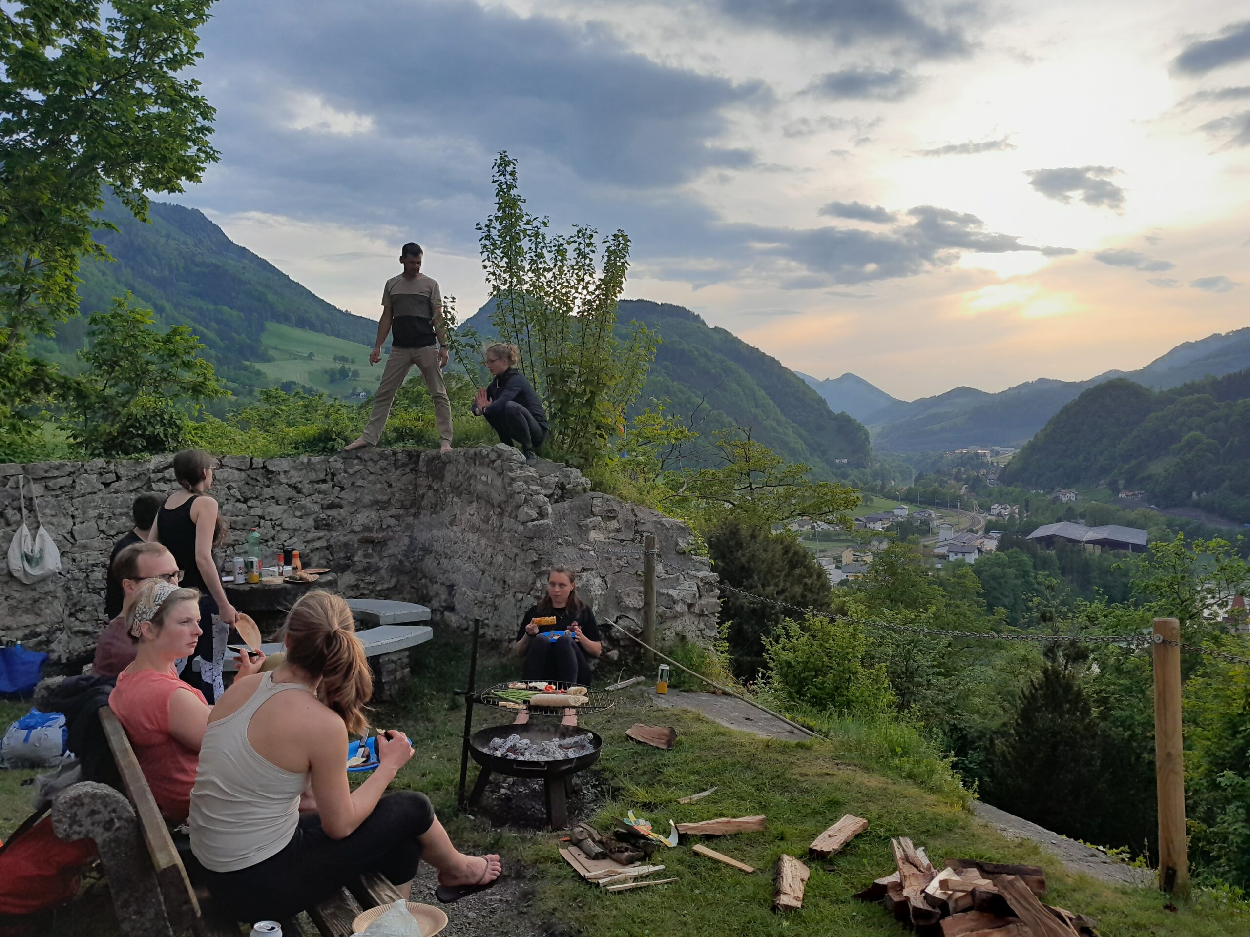 Falls wir nach mal keine Haut mehr an unseren Fingern haben, nehmen wir uns auch gerne mal frei vom Klettern und können Steyr besuchen oder bei der Burg Losenstein im Sonnenuntergang grillen und chillen.