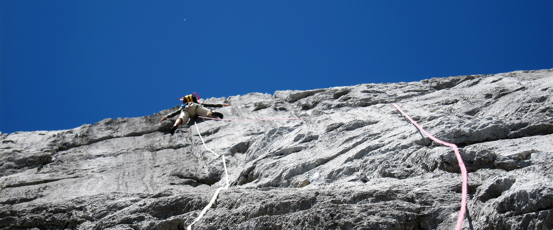 Lass dich von uns in einer der unzähligen Kletterrouten des Dachsteinmassives führen und erlebe die beeindruckenden Formen der zu Stein gewordenen Vergangenheit. Riesigen Riffen und Atollen haben wir es zu verdanken, am Dachstein aus einer unglaublich großen Anzahl an Alpinkletterzielen auswählen zu können. Nicht nur die knapp 1000 m hohe imposante Dachstein Südwand ist einen Besuch wert, sondern ebenso auch die umliegenden Gipfel dieses Gebirgsstocks. Diese Auswahl an Alpinkletterrouten ist ein mit bedacht gewählter Auszug der besonders herausragenden Touren dieses Gebiets. Gerne begleiten wir dich auf Wunsch auch in anderen Touren.