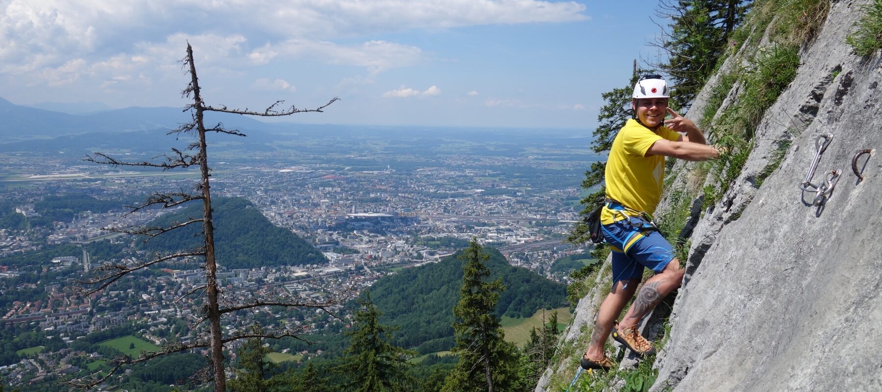 Klettern am Fels für Gruppen und Teams ist möglich mitten in der Stadt Salzburg, am Turm in Rif, am Gaisberg und in St. Gilgen, oder alternativ auch im Pinzgau, in Weißbach bei Lofer.