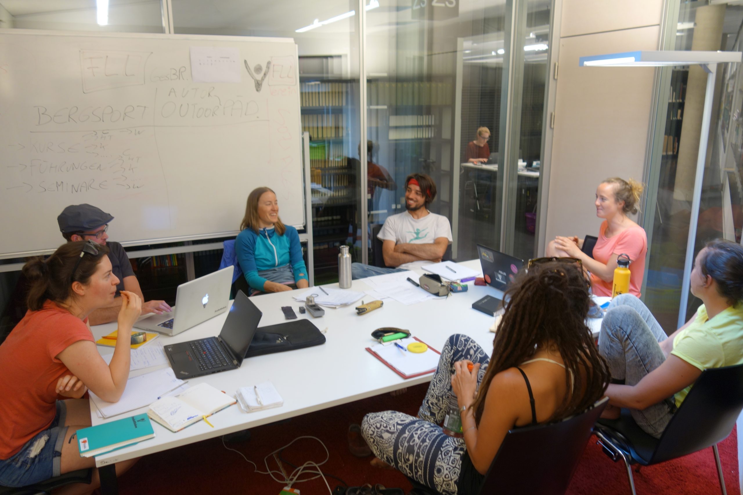 Jährlich im Mai und im Oktober treffen sich Eva, Martin, Timo, Christoph und Felix für die allgemeine Organisation und Programmkoordination mit dem Fokus auf den Bergsportbereich. Zudem widmen sie sich der kritischen Reflexion des Status Quo, arbeiten das Feedback ein und treffen wichtige Entscheidung bzgl. Unternehmensentwicklung und Jahresplanung. So entsteht jedes Mal wieder ein neuer Masterplan ;).